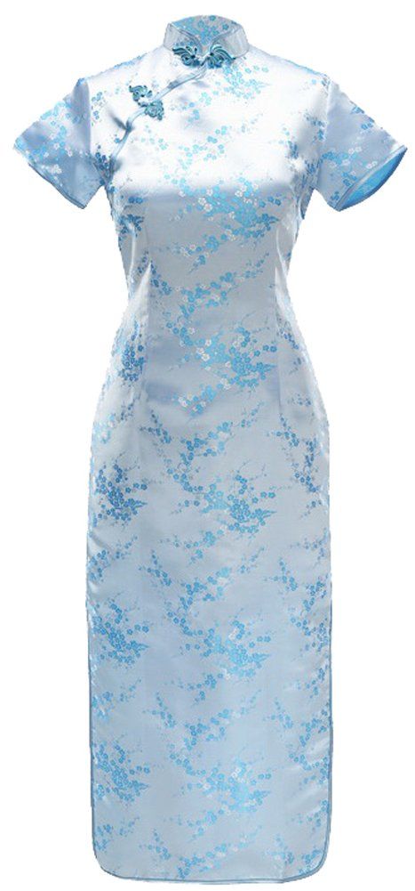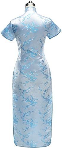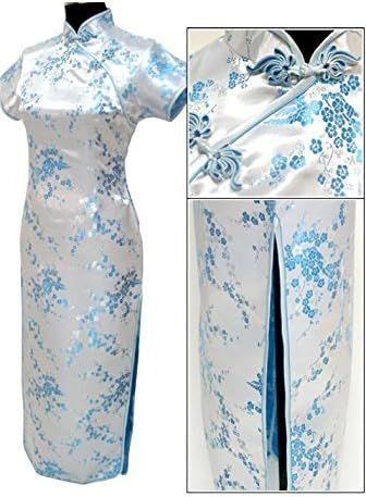 7Fairy Sexy Women's Light Blue Floral Long Chinese Dress Cheongsam