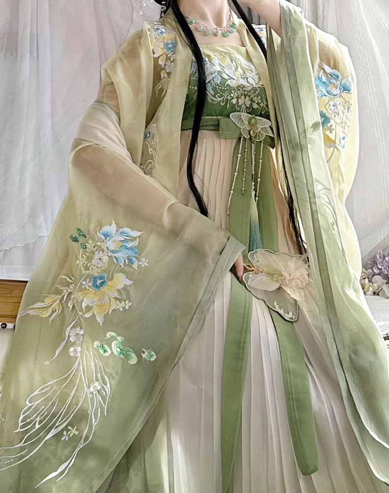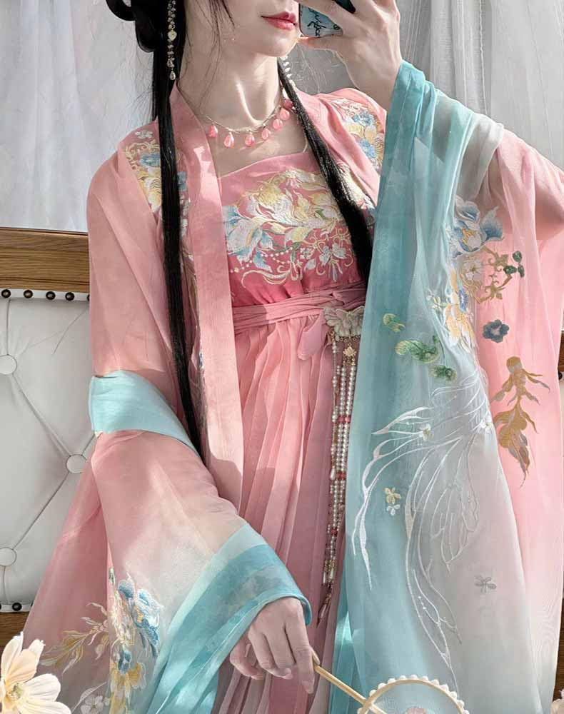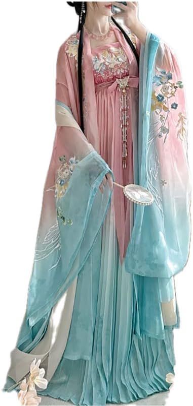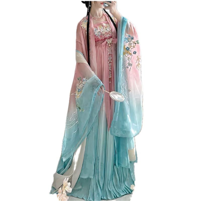 Ancient Chinese Hanfu Dress Women Traditional Embroidery Gradient Pink Hanfu Costume Party Dress Outfit