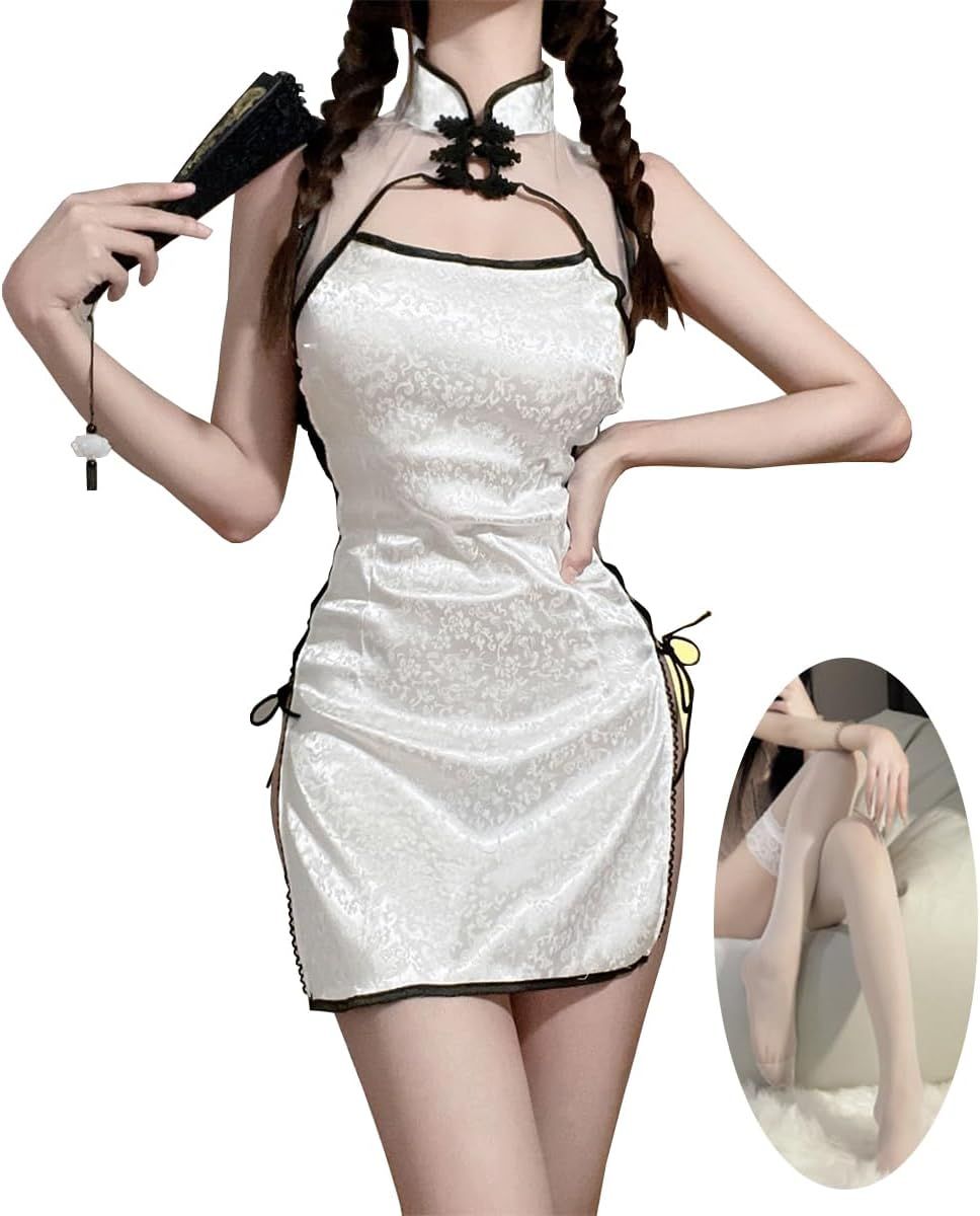Cheongsam Dress Sexy Anime Cosplay Lingerie Outfit High Waisted Slit Dark Goth Lingerie Rave Halloween Costume
