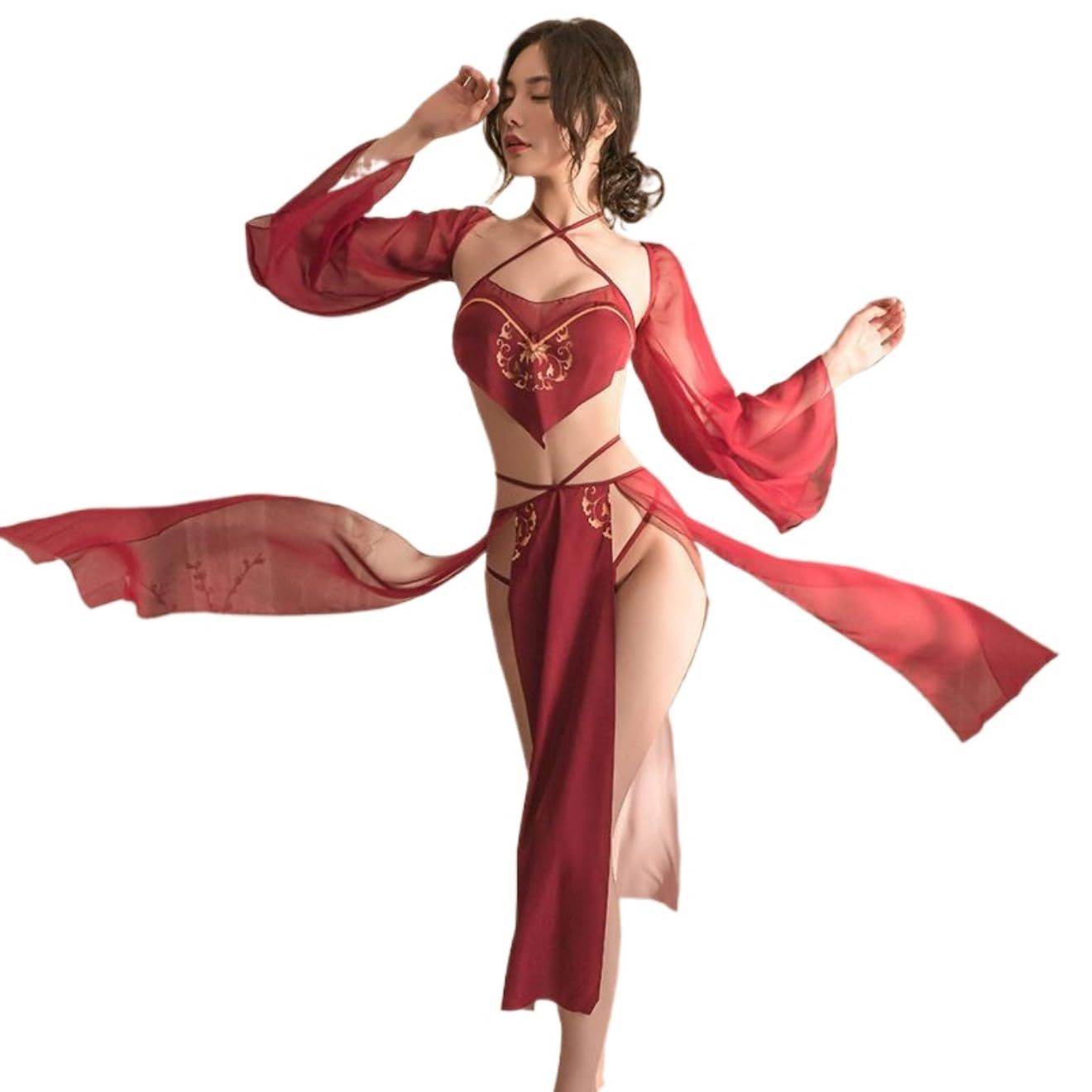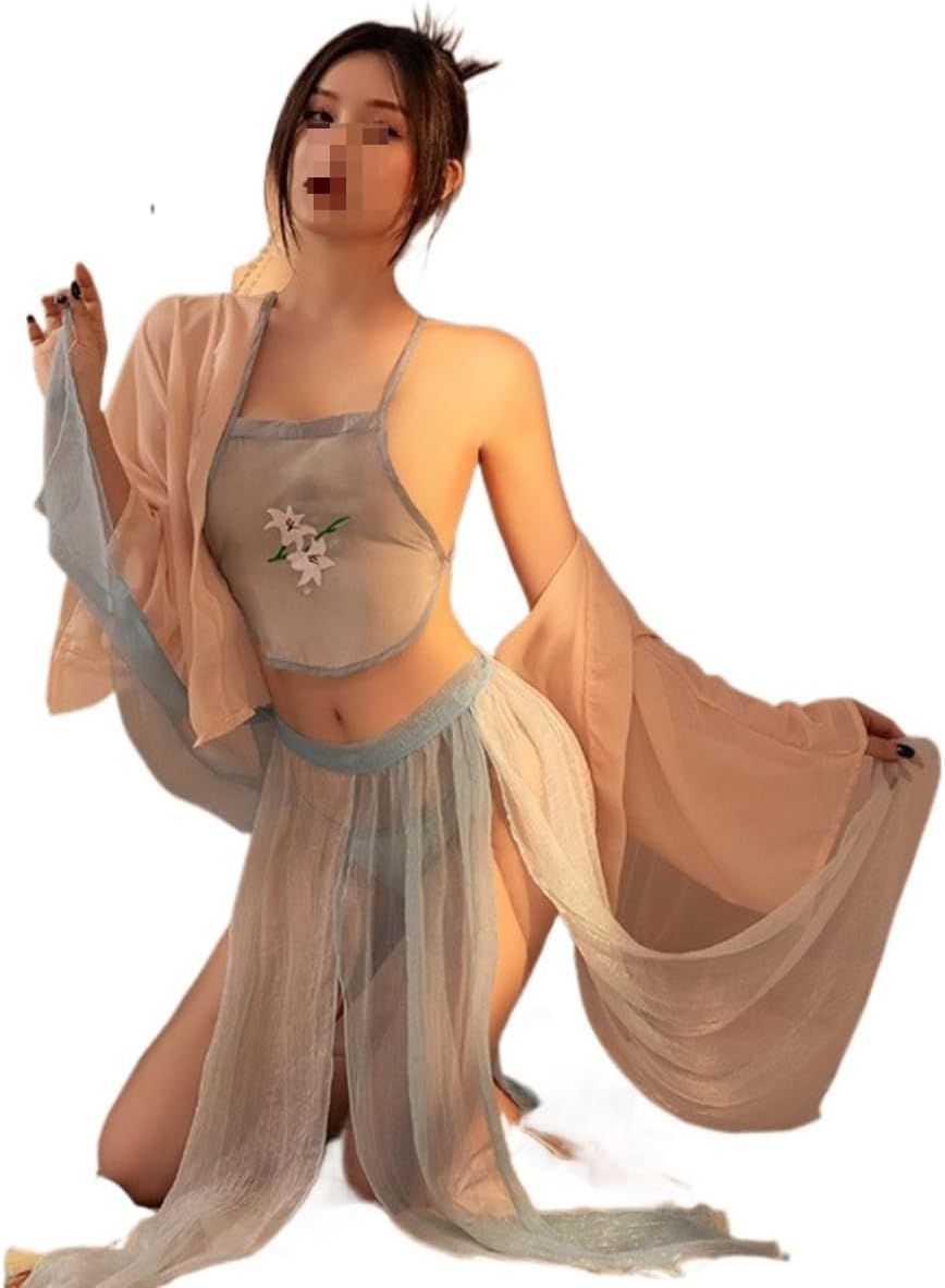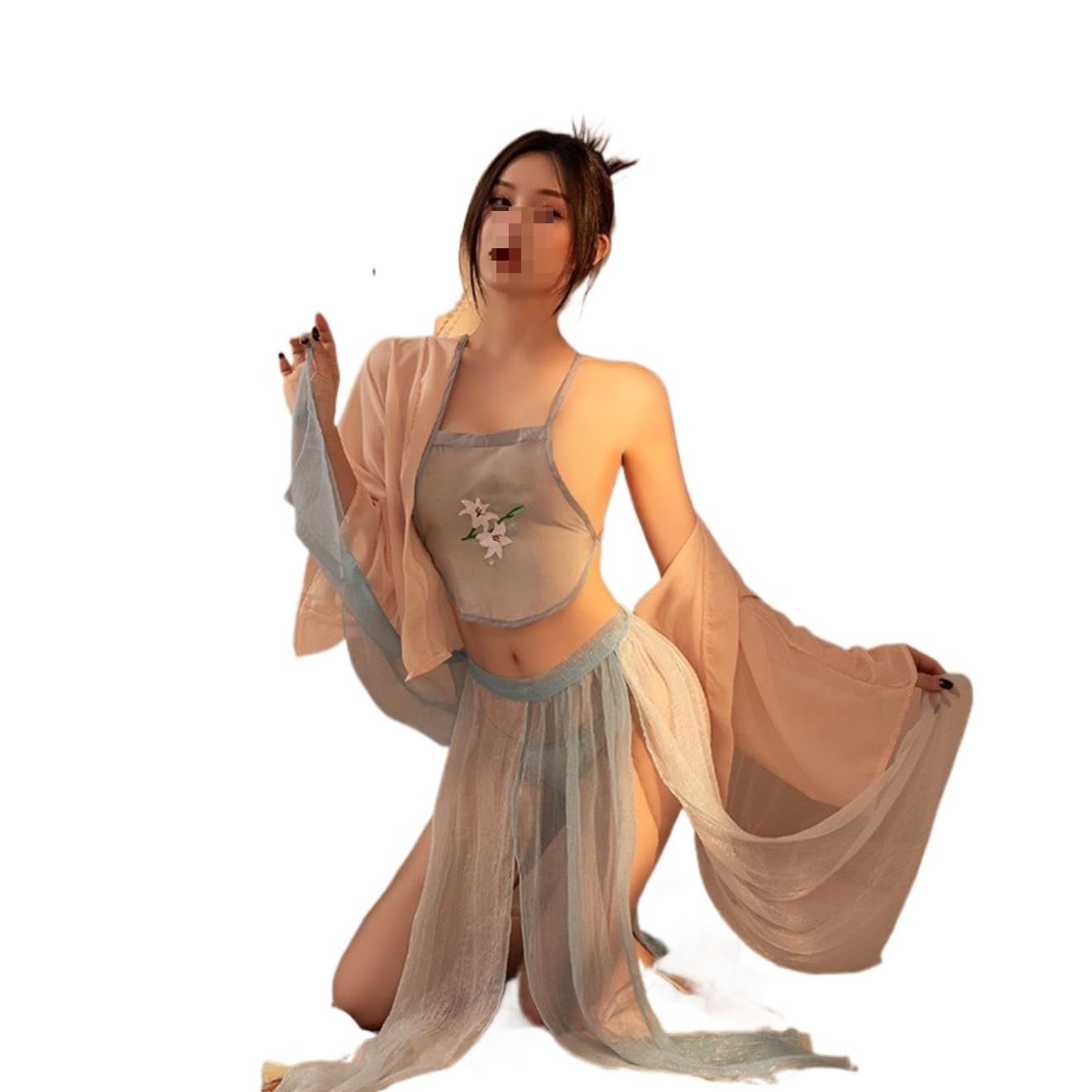 Chinese Hanfu Costumes Porno Show Sexy Lingerie See Through Mesh Nightgowns Classical Nightdress Hanfu Cosplay Allure