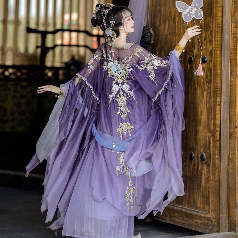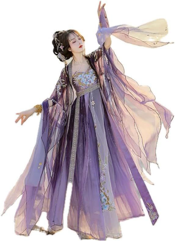Chinese Hanfu Dress Women Costume Traditional Tang Dynasty Purple&Yellow Embroidery Hanfu