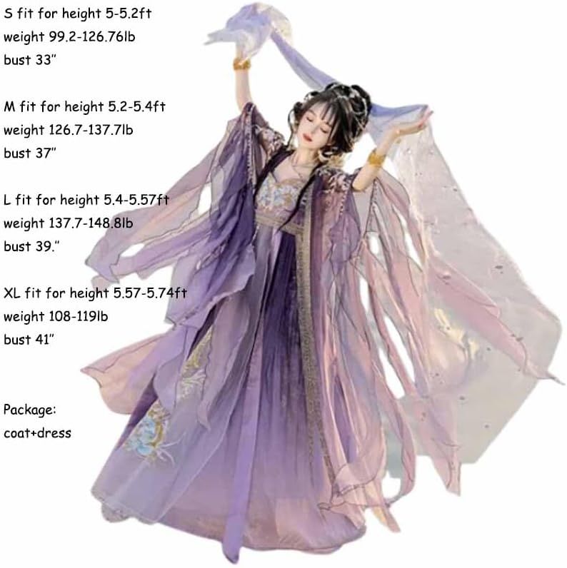 This is a ancient Chinese traditional Tang dynasty hanfu costume for party. It is made of high quality chiffon&polyester material, beautifully embroidered,elegantly and light,comfortable to wear. It is perfect for Chinese traditional activities, performances, weddings, Photography,Tour,parties, etc. It is also a great gift for your friends or family. This costume is sure to make you the center of attention at any event. Please check the size chart carefully before you place the order. If you have any questions, please feel free to contact us. We will do our best to help you. Thank you!