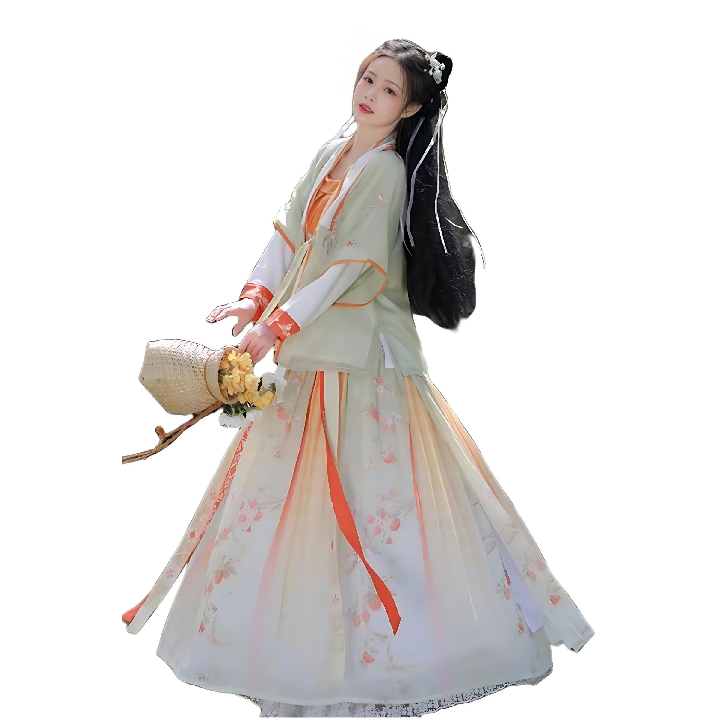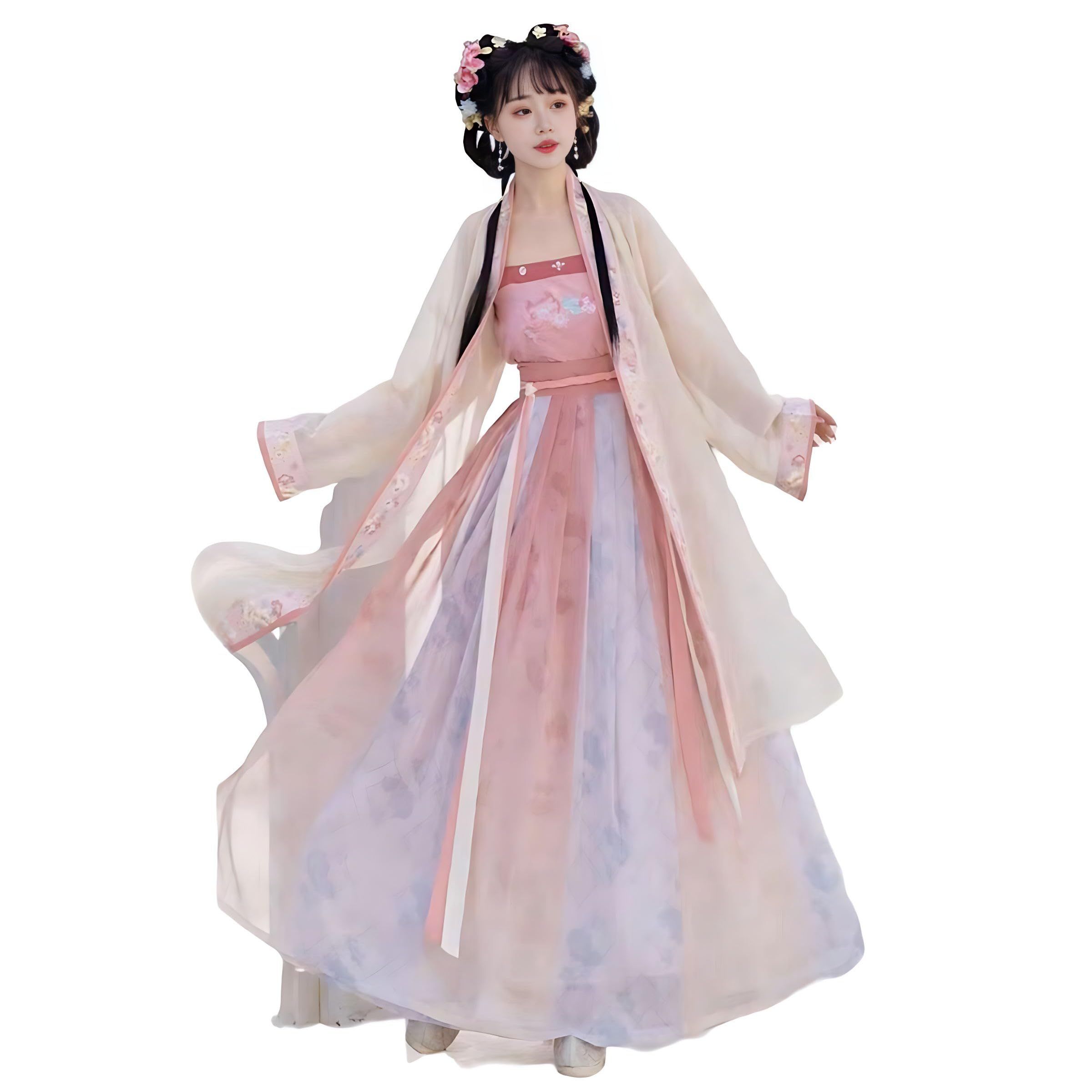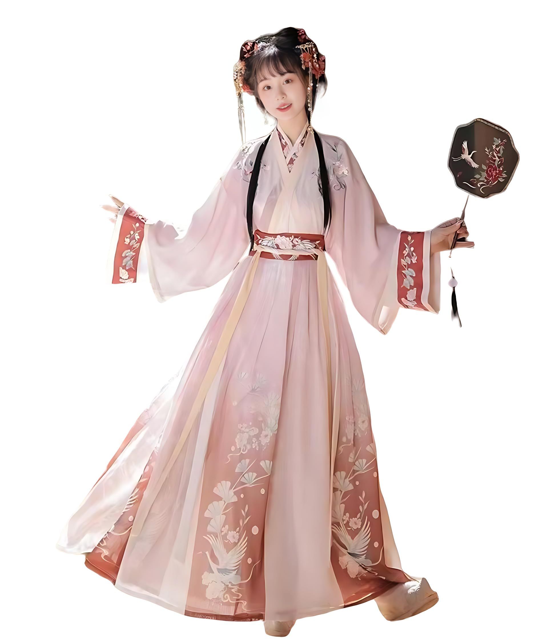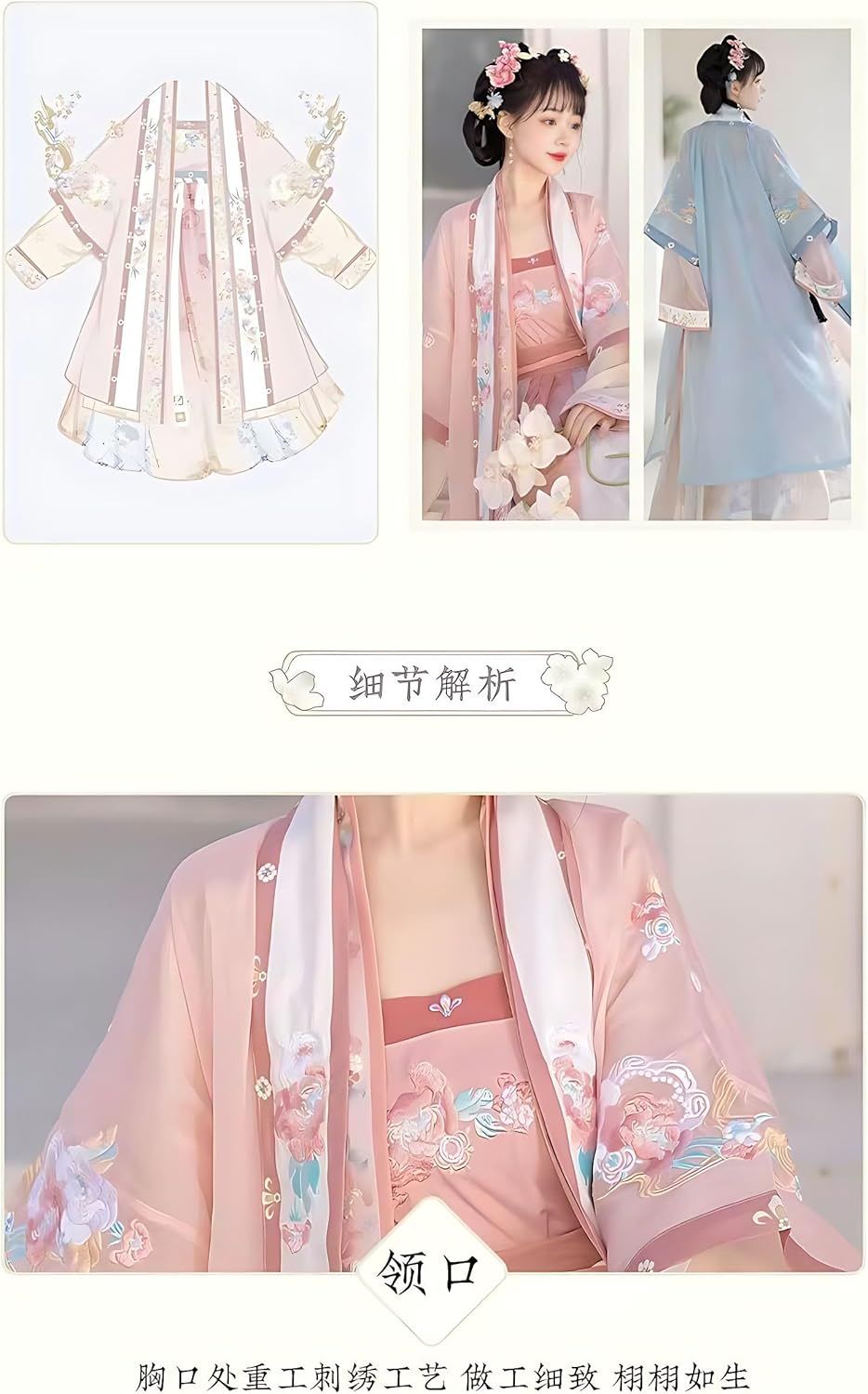 This Chinese Hanfu Made with polyester fiber and cotton is soft and comfortable to wear. The pattern on the fabric is made of unique embroidery process,The chest is heavily embroidered with meticulous craftsmanship; The waist is designed with a lace up, which wraps around the waist to fully showcase the waist; The skirt is printed with exquisite patterns, exuding a sense of immortality; the overall feeling is exquisite and beautiful.
