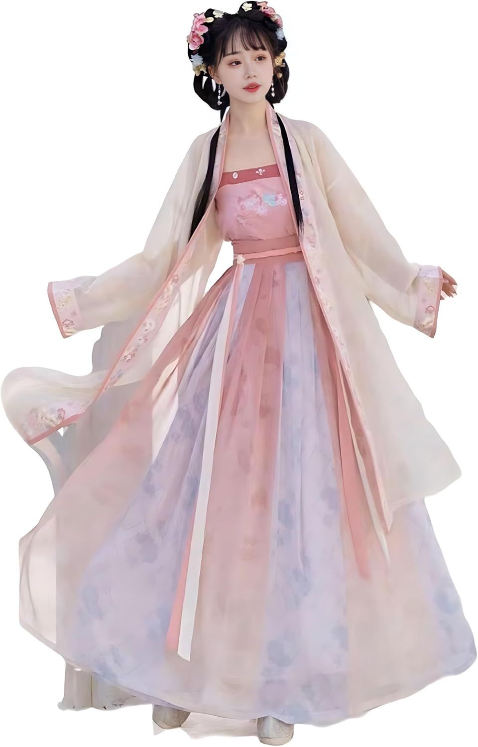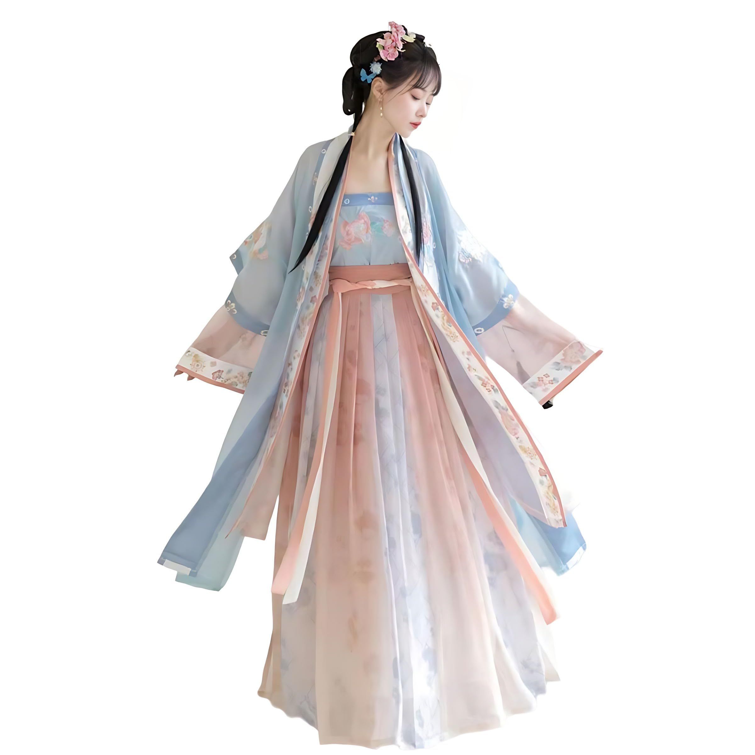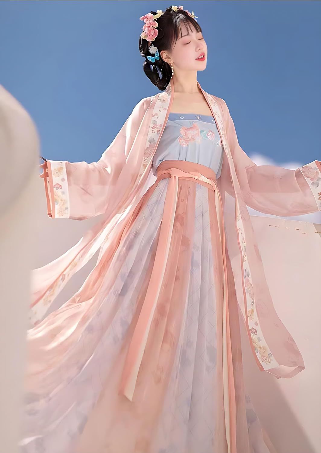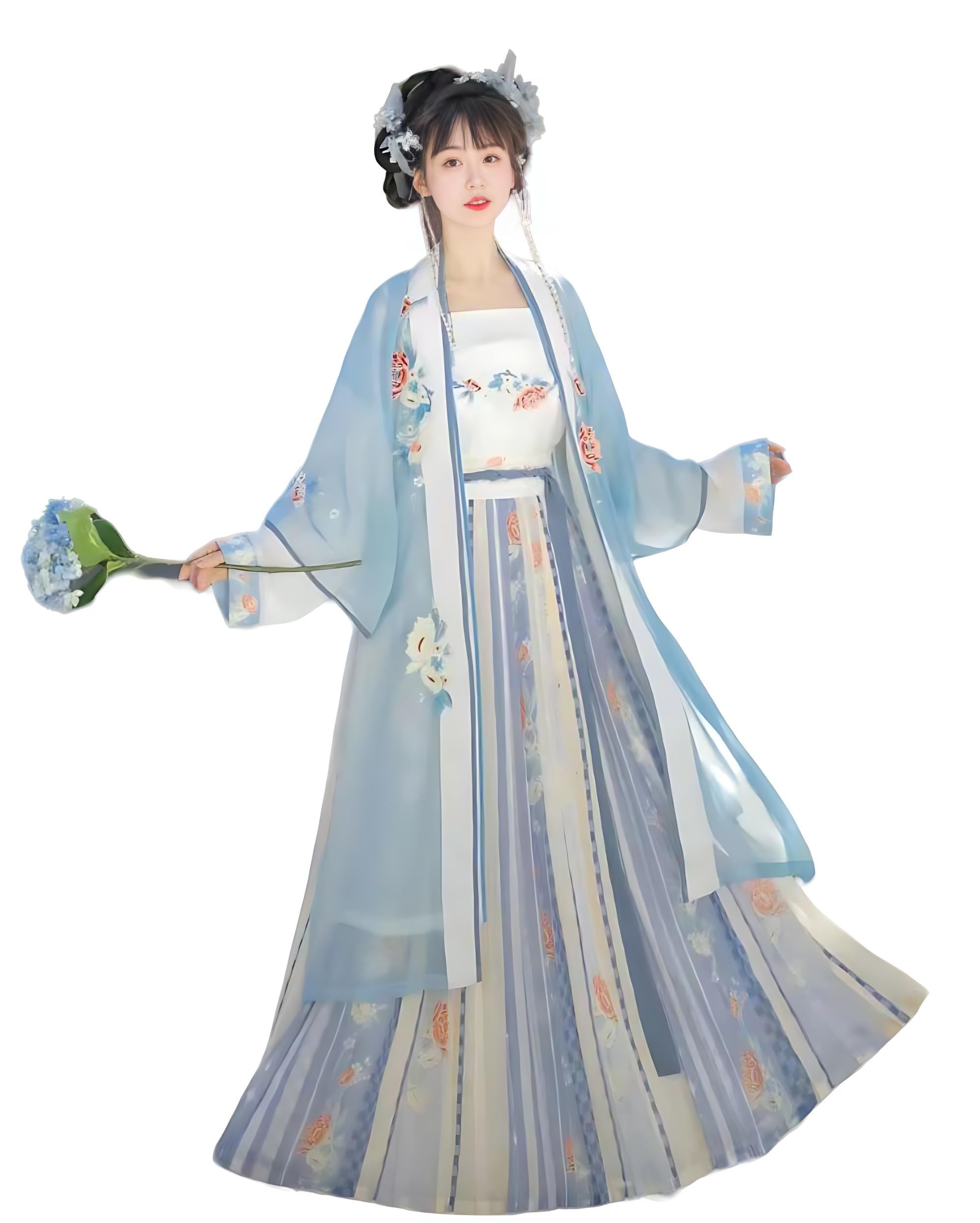 This Chinese Hanfu Made with polyester fiber and cotton is soft and comfortable to wear. The pattern on the fabric is made of unique embroidery process,The chest is heavily embroidered with meticulous craftsmanship; The waist is designed with a lace up, which wraps around the waist to fully showcase the waist; The skirt is printed with exquisite patterns, exuding a sense of immortality; the overall feeling is exquisite and beautiful.