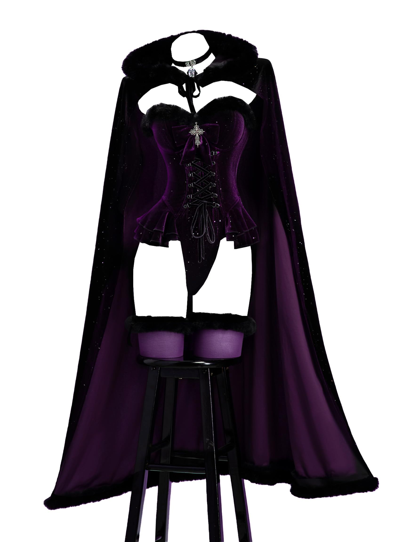 MEOWCOS Women's Bodysuit Halloween Christmas Bodysuit Cape Set Witch Cosplay ...