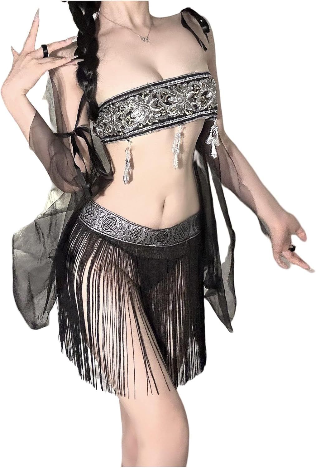 Pure wind sexy underwear sexy ancient style embroidery chest tassel skirt uniform set classical court Hanfu