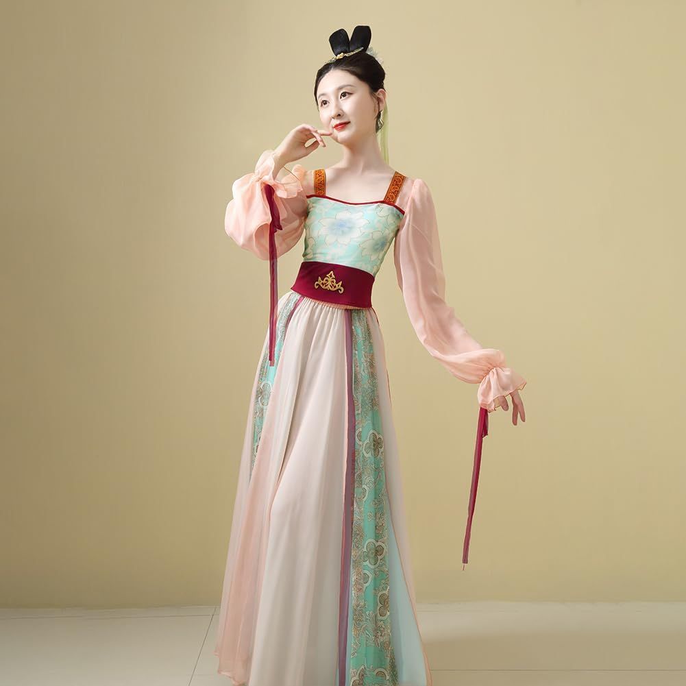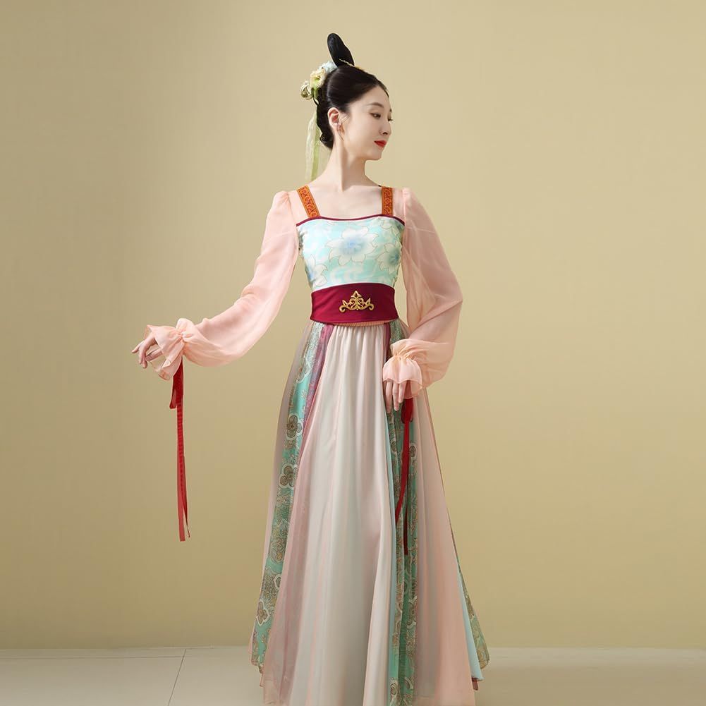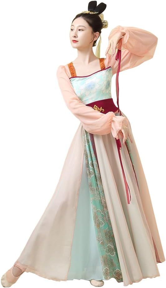 ROYAL SMEELA Chinese Hanfu Clothing Classical Dance Costume Skirts for Women Flowy Mesh Sheer Dance Top Chinese Style Clothes