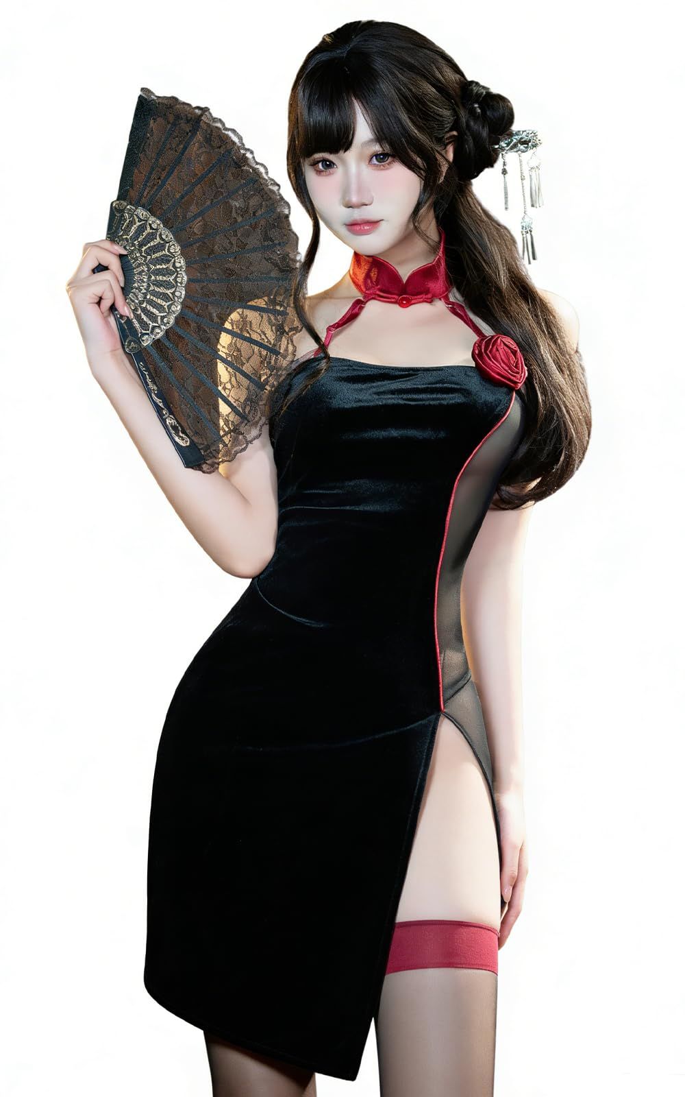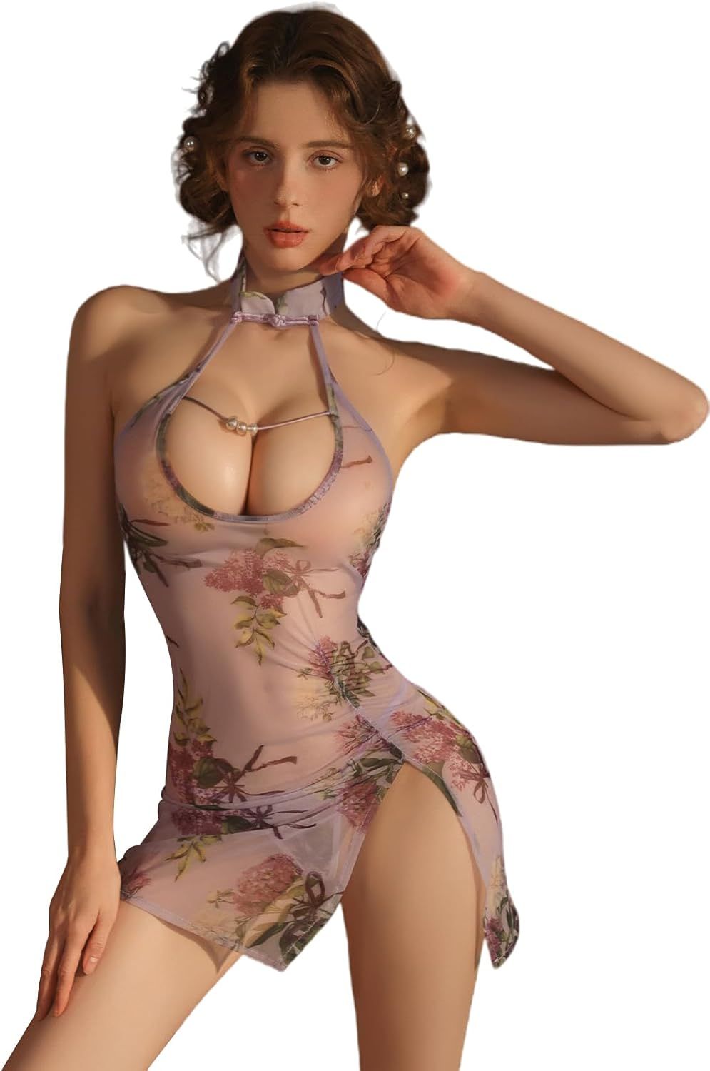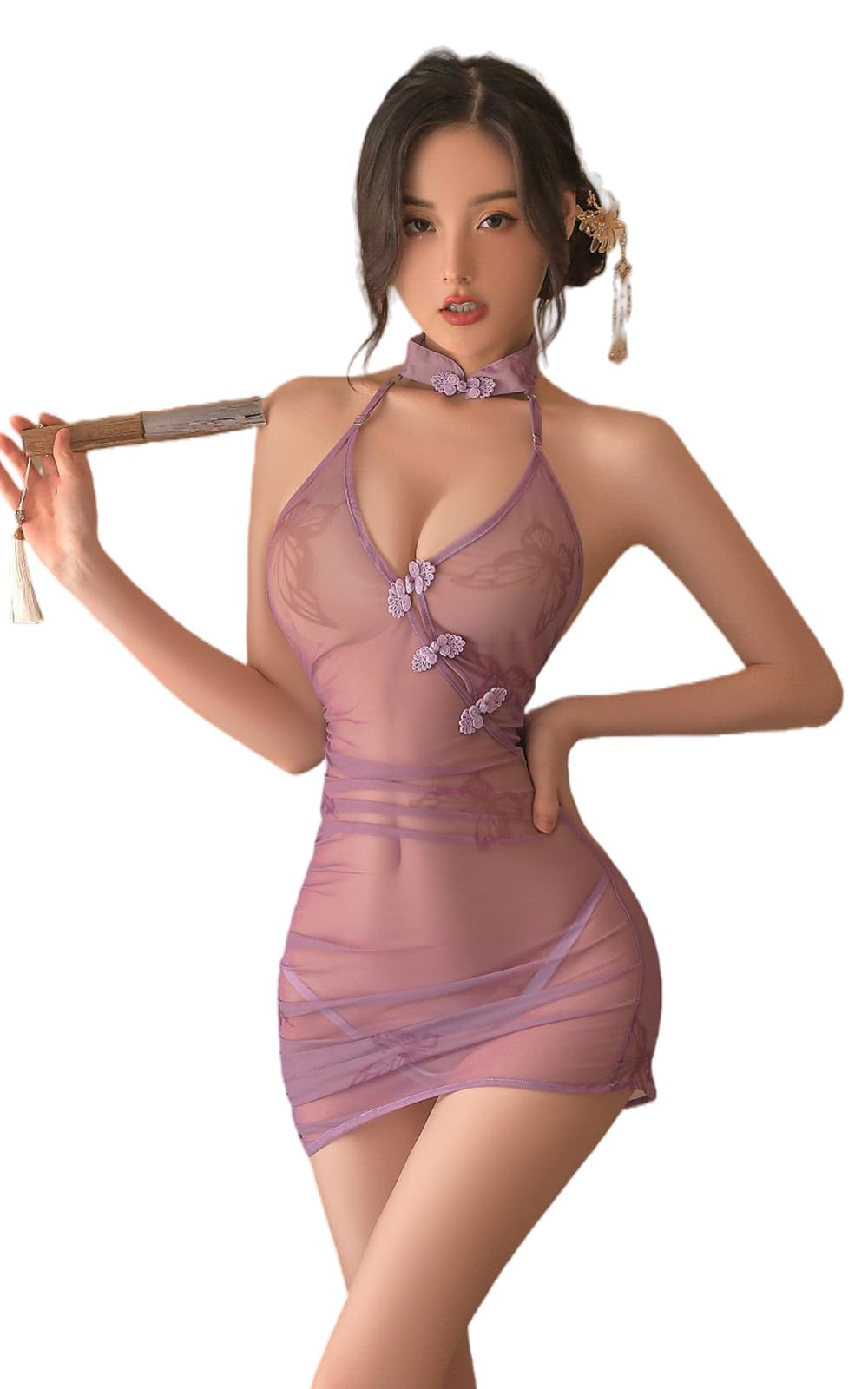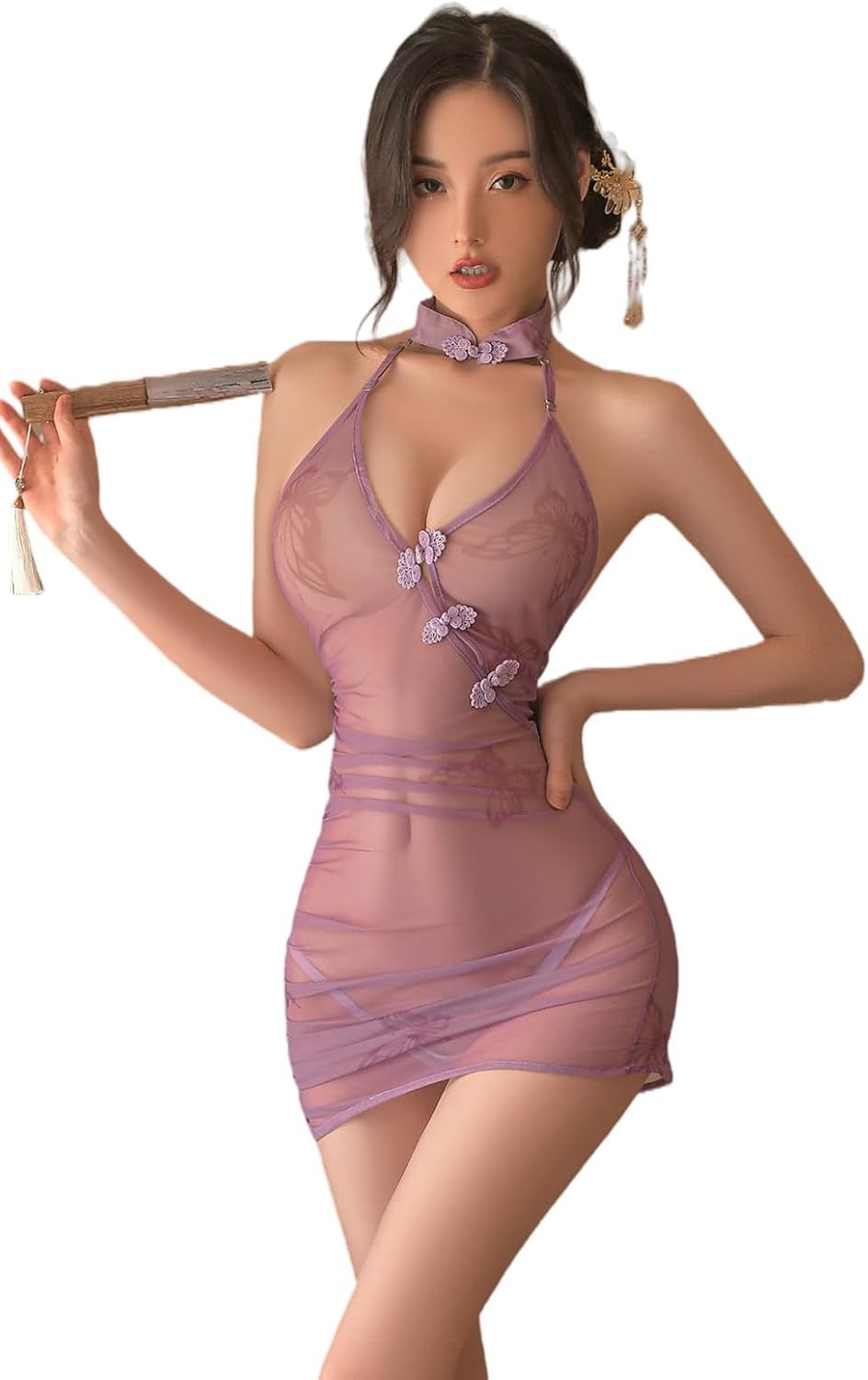 Sexy Lingerie Babydoll Dress For Women Lace Trim Dress Chinese Dress Cheongsam For Women One Size Fit Weight 80-150 lb