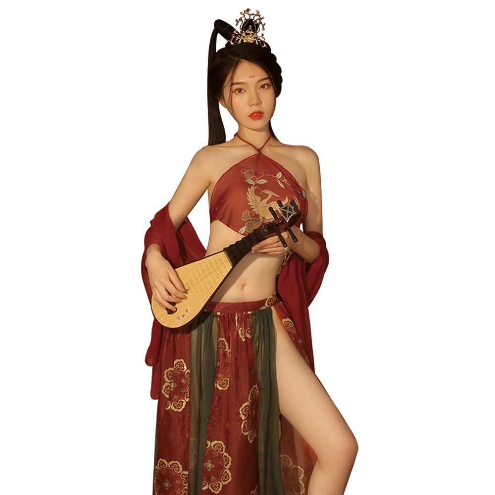 SINMIUANIME Women's Ancient Traditional Chinese Costume Sexy Embroidered Bellyband Cosplay Lingerie Hanfu Set