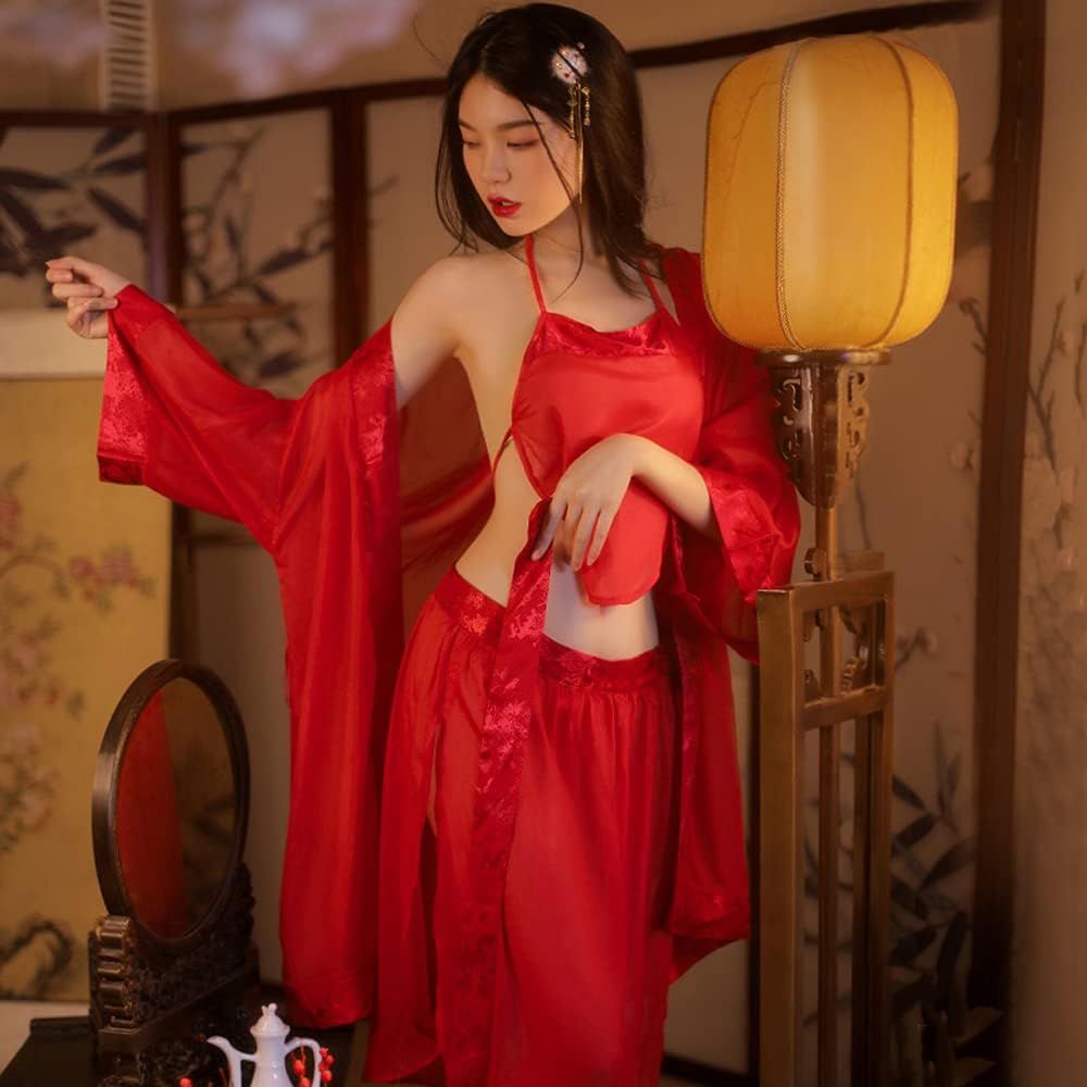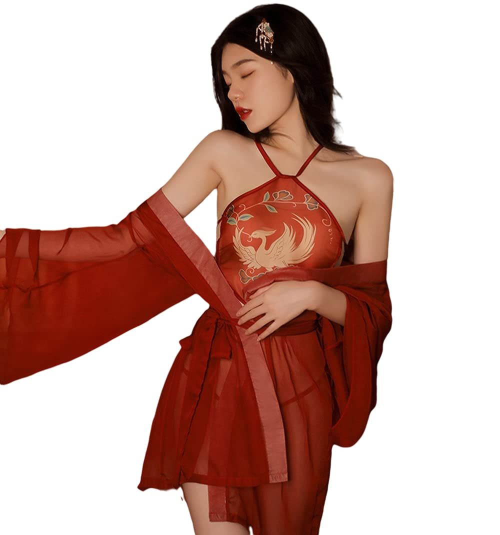 Womens Kimono Japanese Sexy Print Dress Cosplay Lingerie Kimono Set