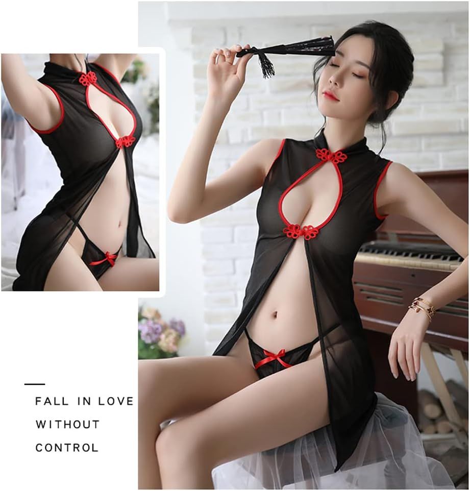 SINROYEE Cheongsam Dress for Women Sexy cosplay lingerie Dress Teddy Babydoll Nightgown Japanese Chinese and Korean Style