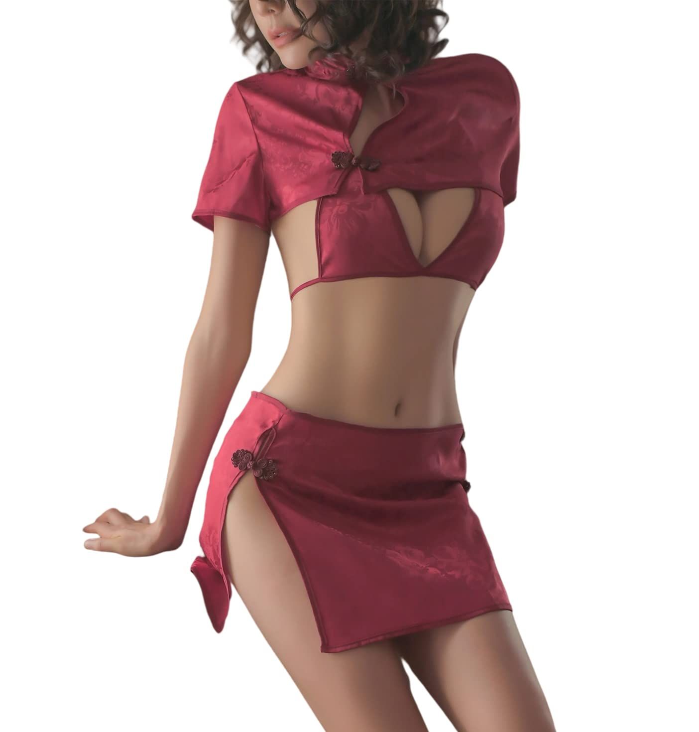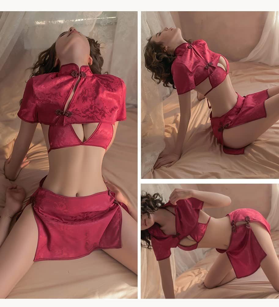 SINROYEE Cheongsam Lingerie Set for Women Chinese Sexy Qipao Anime Cosplay Costume Shirt Top