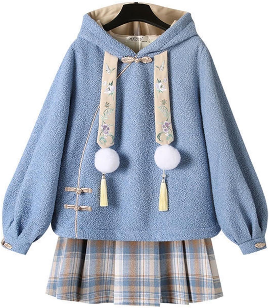 Women Hoodies Sweatshirts Improved Hanfu Cheongsam Autumn and Winter Dress (Color : 4039 top, Size : XXXL)