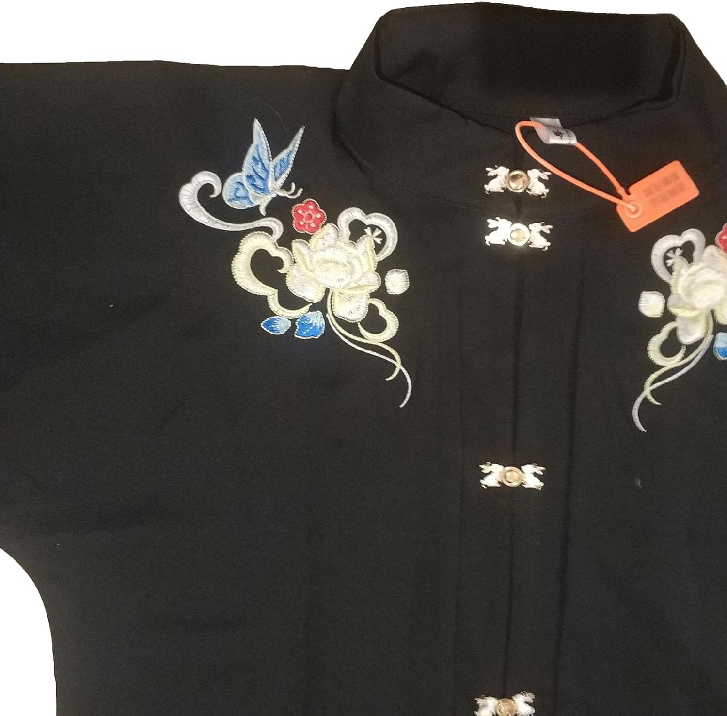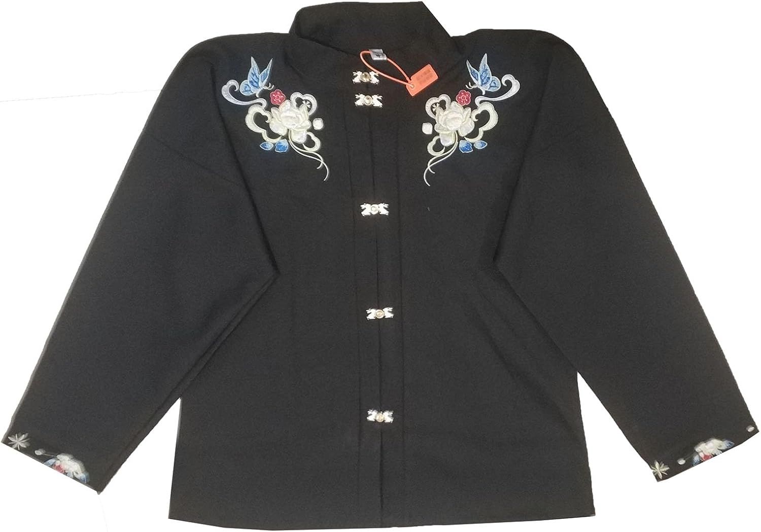 Step into timeless elegance with this traditional dress that beautifully merges classic Asian design elements with luxurious details. The dress features a mandarin collar and flows into a dramatic long skirt, cinched elegantly at the waist with a coordinating sash. The bottom portion showcases elaborate floral patterns and geometric designs, creating striking visual interest. The long sleeves and full-length design offer graceful coverage, while the carefully placed embellishments, including delicate floral embroidery near the collar, demonstrate exceptional attention to detail. This dress combines traditional aesthetics with refined craftsmanship, making it an ideal choice for cultural celebrations, special occasions, or collectors of fine traditional garments.