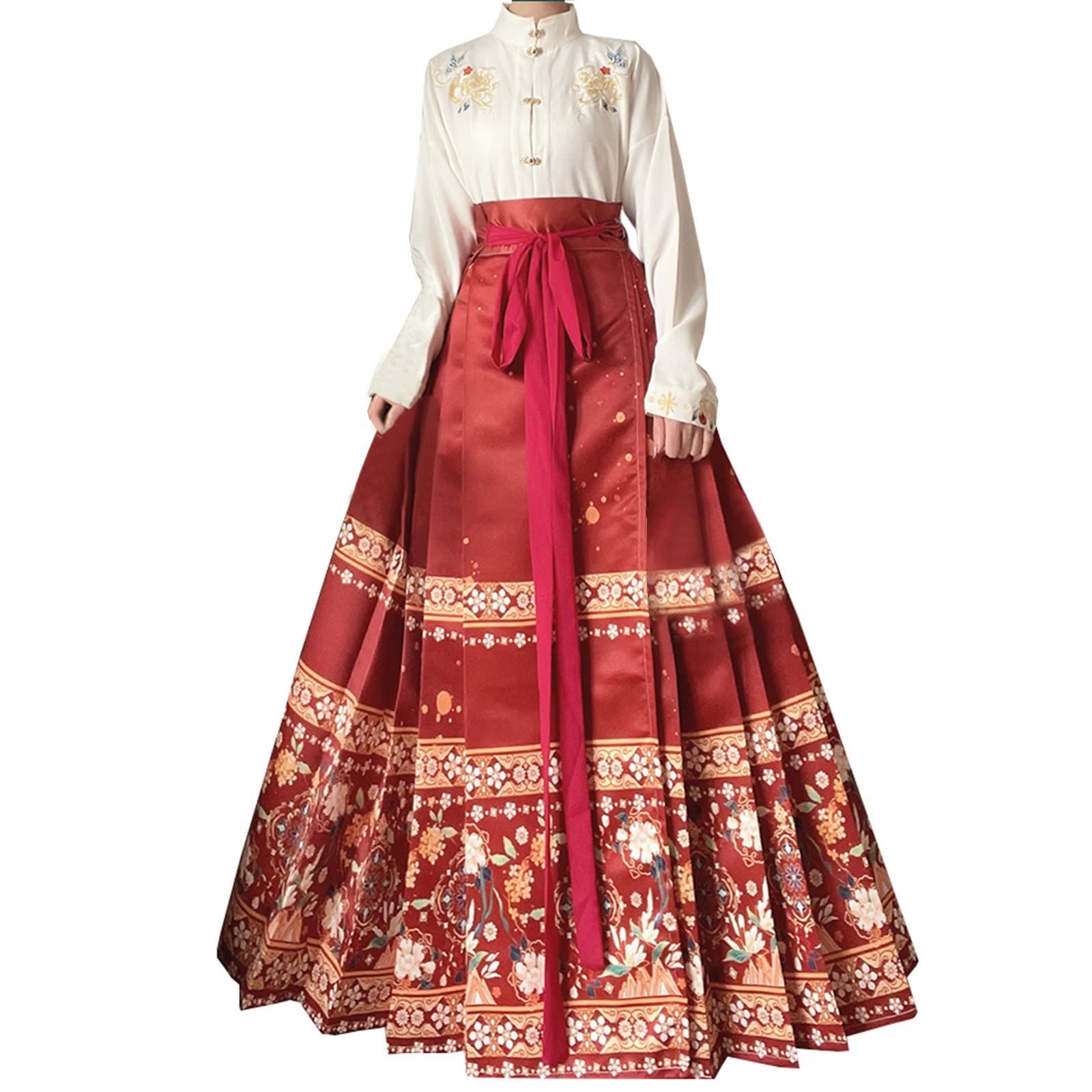 KUFEIUP Women's Traditional Hanfu Dress Floral Top Long Maxi Skirt Cosplay Co...