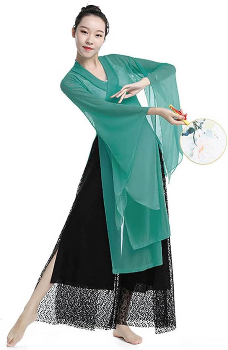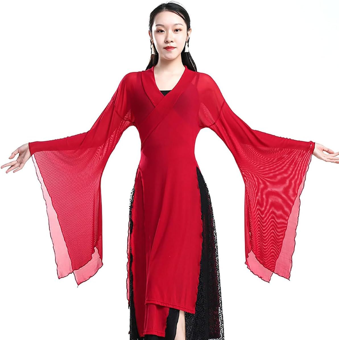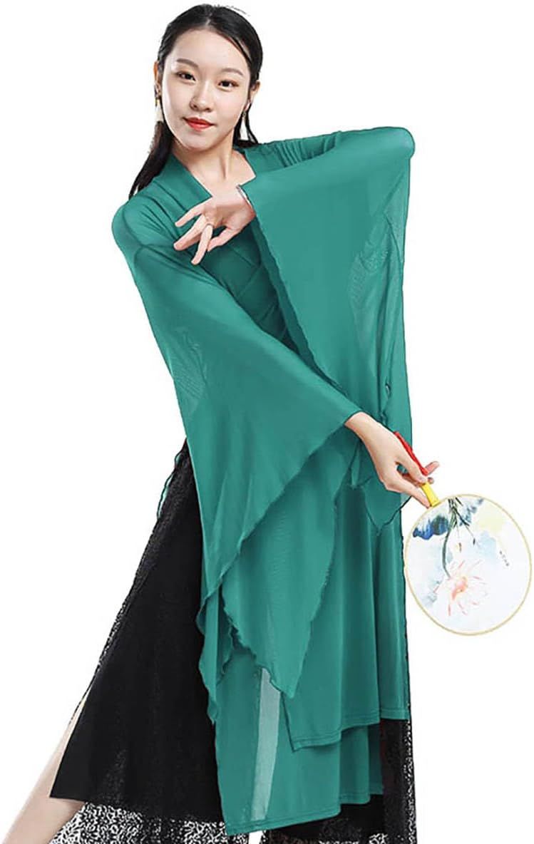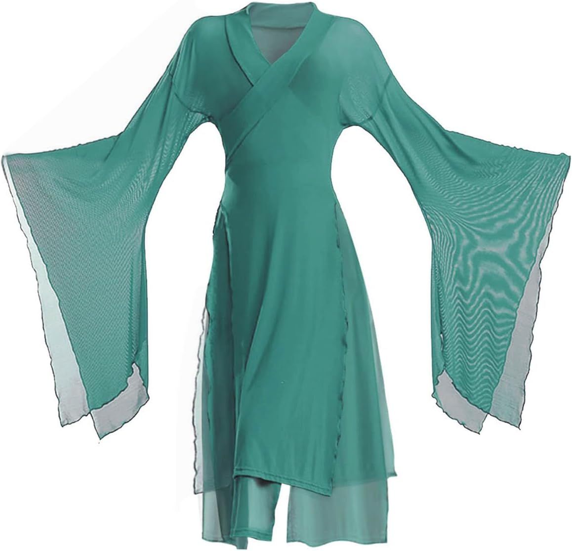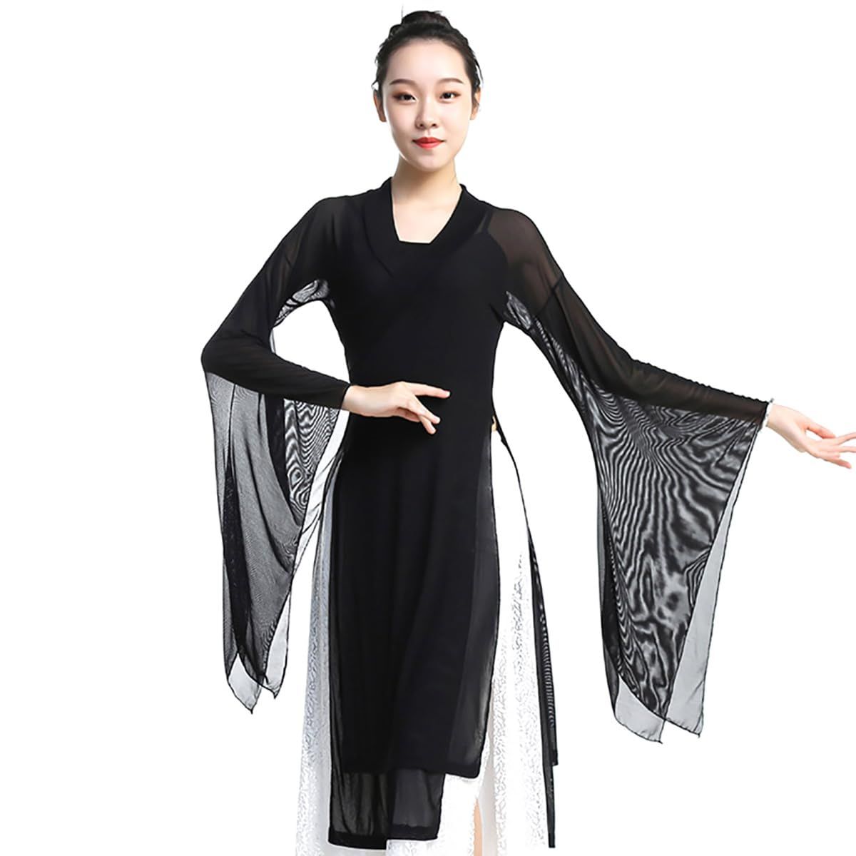 Women's Chinese Dance Tops Sheer Wide Sleeve Wrap Front Side Split Hanfu Top