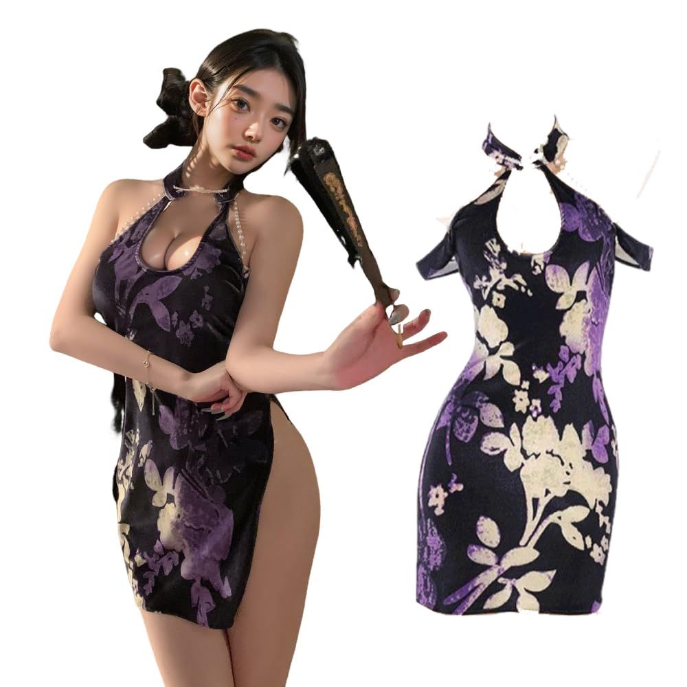 Women's cosplay role-playing underwear hanging neck hollow qipao dress cheongsam underwear