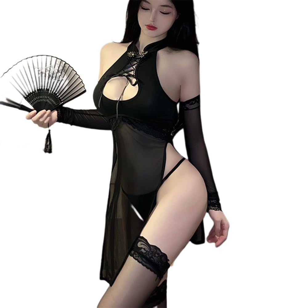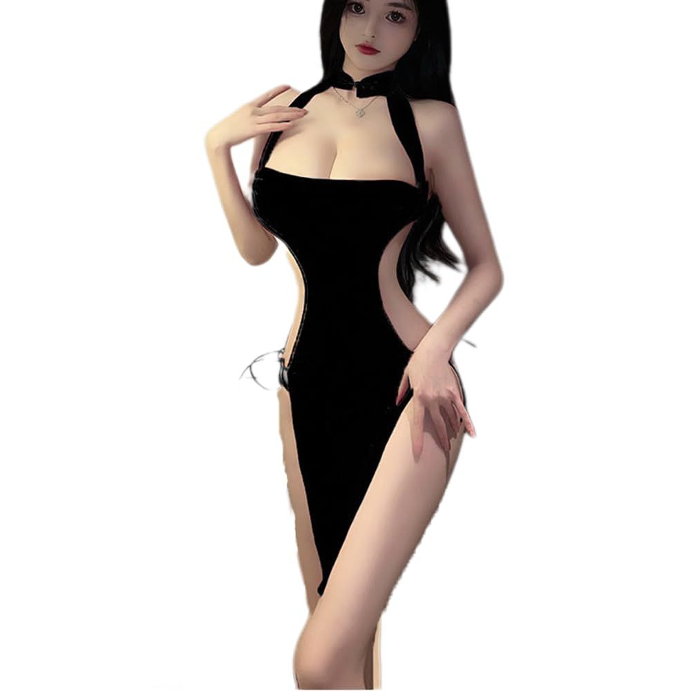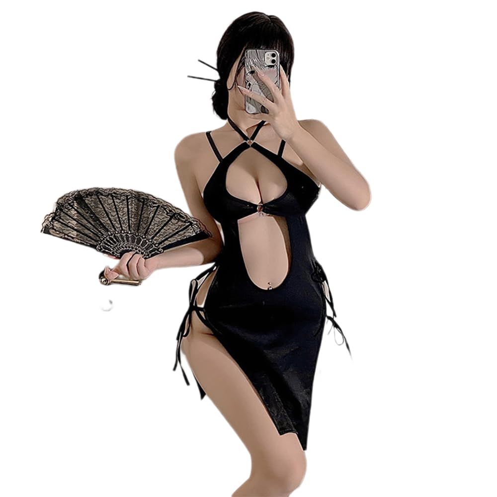 Women's Sexy Velvet Cheongsam Chinese Satin Split Tight Mini Dress Underwear